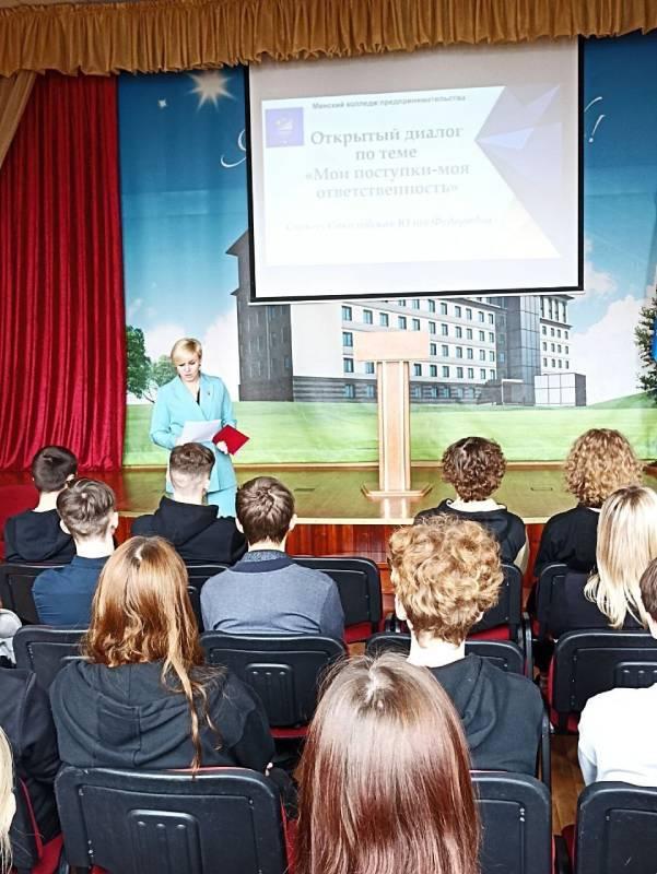 Открытый диалог прошел с участием приглашенного гостя - адвоката Соколовской Юлии Федоровны.