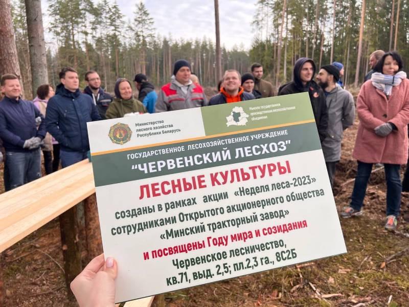 В прошедшие выходные четыре десятка тракторостроителей высадили хвойные породы в Червенском районе на площади в 2,3 гектара.
