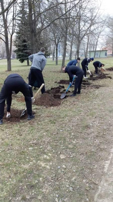 Уборка территории от мусора и прошлогодней листвы осуществлялась на бульваре Пулихова, по ул. Авангардная, ул. Радиальная, озелененной территории по ул. Радиальная и озелененной территории по ул. Менделеева. Помощь в уборке вышеуказанных территорий оказали студенты филиала БНТУ "Минский государственный архитектурно-строительный колледж".