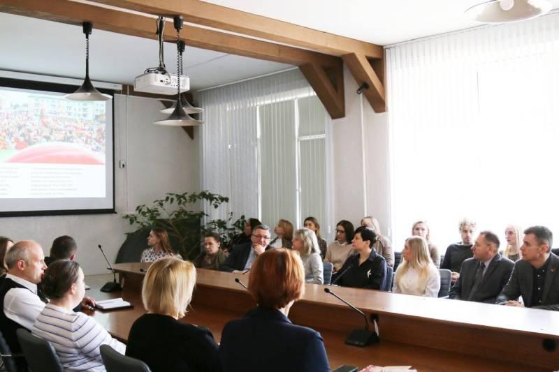 20 апреля, в рамках единого дня информирования, состоялась встреча начальника главного управления идеологической работы и по делам молодёжи Мингорисполкома Ольги Николаевны Чемодановой с трудовым коллективом и студенческим активом института.