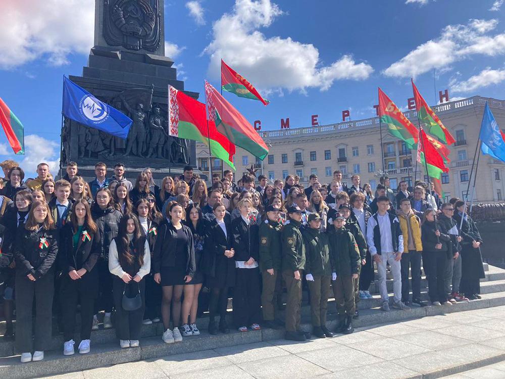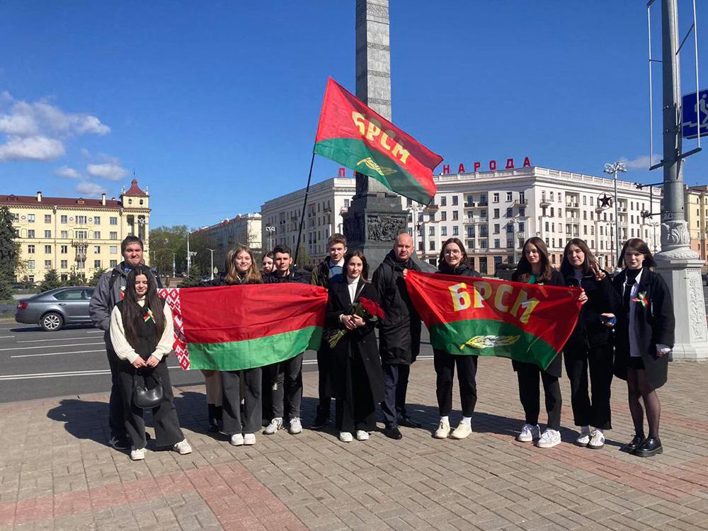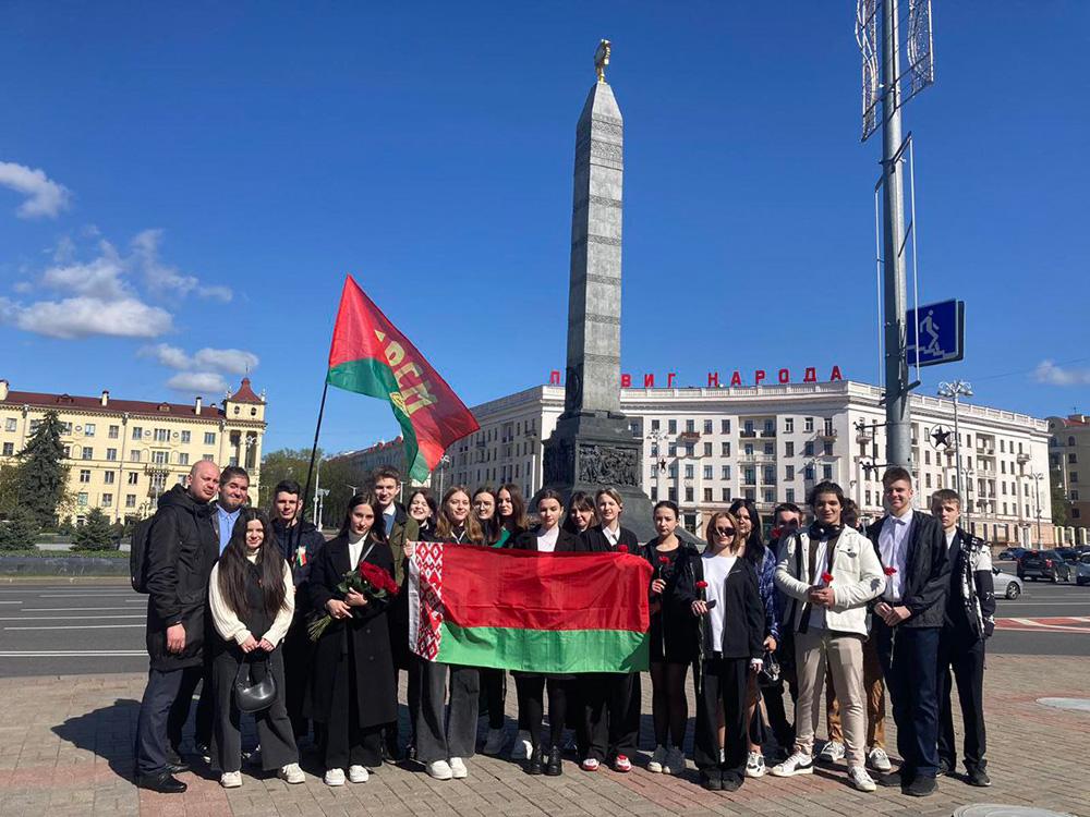 Молодежь почтила память погибших участников и героев Великой Отечественной войны у Монумента Победы в знаковом месте столицы и Беларуси - площадь Победы.