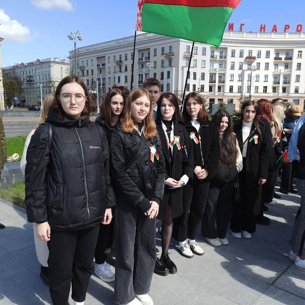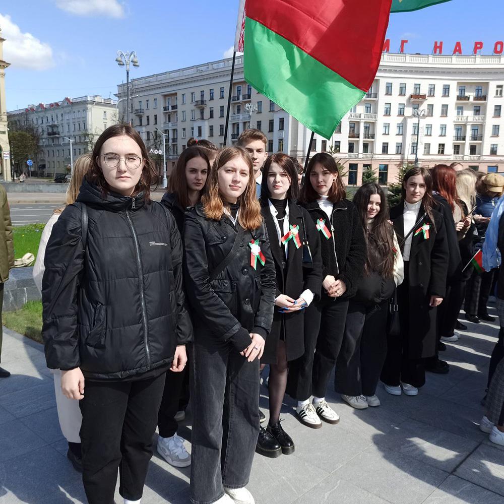 Сегодня учащиеся Минского колледжа предпринимательства из числа актива ОО «БРСМ» приняли участие в районной церемонии возложения цветов в рамках городской акции «30 дней до Победы».