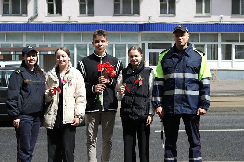 В рамках празднования Дня Победы сотрудники отдела ГАИ и ИДН Партизанского РУВД г.Минска совместно с учениками средней школы №86 провели профилактическую акцию «Мы помним!»
