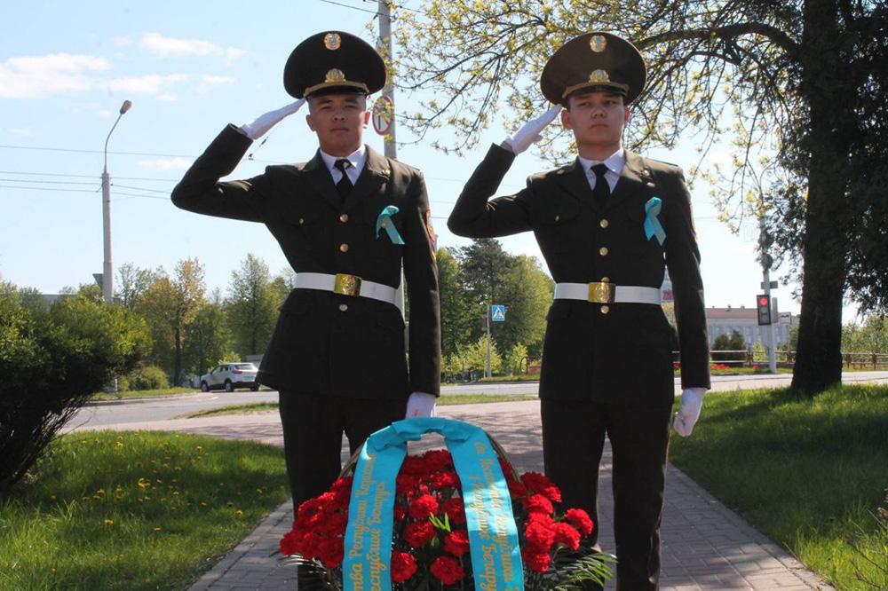 В этом году уже в 15 ый раз по доброй традиции Посол Казахстана в РБ Аскар Бейсенбаев и представители диаспоры,а также курсанты из Казахстана,обучающиеся в институте МЧС и Военной Академии Республики Беларусь торжественно возложили цветы к подножью памятника храбрым батырам(по казахски воины-богатыри).84 славных сына Казахской земли ,воевавшие на территории нашей Беларуси, были удостоены звания Героя Советского Союза.На мероприятии традиционно присутствовали от администрации Партизанского района заместитель главы Людмила Филиппович,руководство и учащиеся учреждений образования сш 22 и сш 87,кто постоянно ухаживает за монументом.В своей речи Посол Казахстана поблагодарил белорусский народ за достойную память о трагедии военного времени и победе Советского народа,выразил надежду на дальнейшее сотрудничество и укрепление дружбы между Казахстаном и Белорусью.С ответным словом выступила Л.Филиппович,которая цитируя слова Гимна Республики Беларусь "Мы ,белорусы-мирные люди"призвала всех присутствующих чтить память о Священной войне,о героическом подвиге советского народа,завоевавшего мир,пожелав и белорусам и казахам всегда оставаться верными и достойными потомками,сохранить мир в каждом доме.Под звуки песни"День Победы"символмчески белые голуби взлетели в ясное голубое небо!