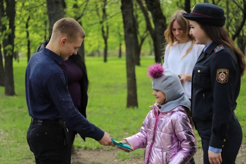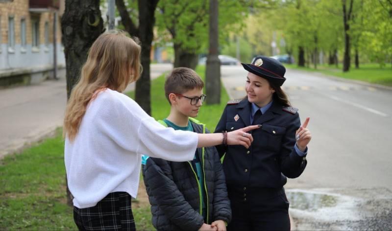 Офицер вместе с юными помощниками (старшеклассниками школ района) организовала рейд на дорогах, по которым дети обычно возвращаются с занятий домой.