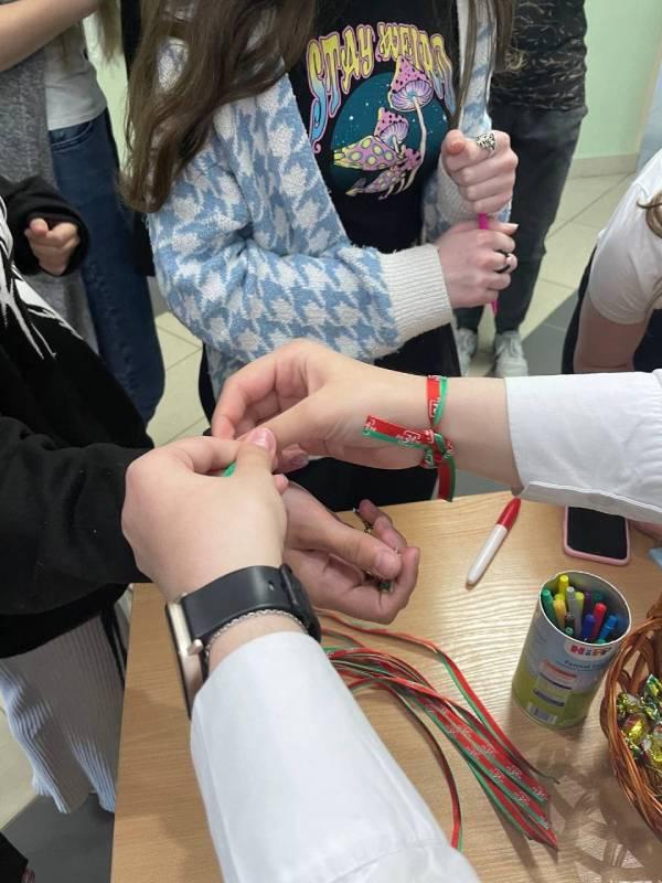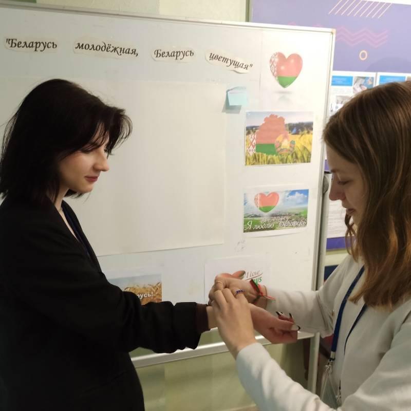 Актив ПО ОО "БРСМ" колледжа поздравил всех учащихся с наступающим праздником и провел акцию, направленную на формирование уважения и гордости к белорусским государственным символам.