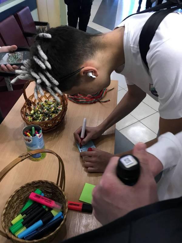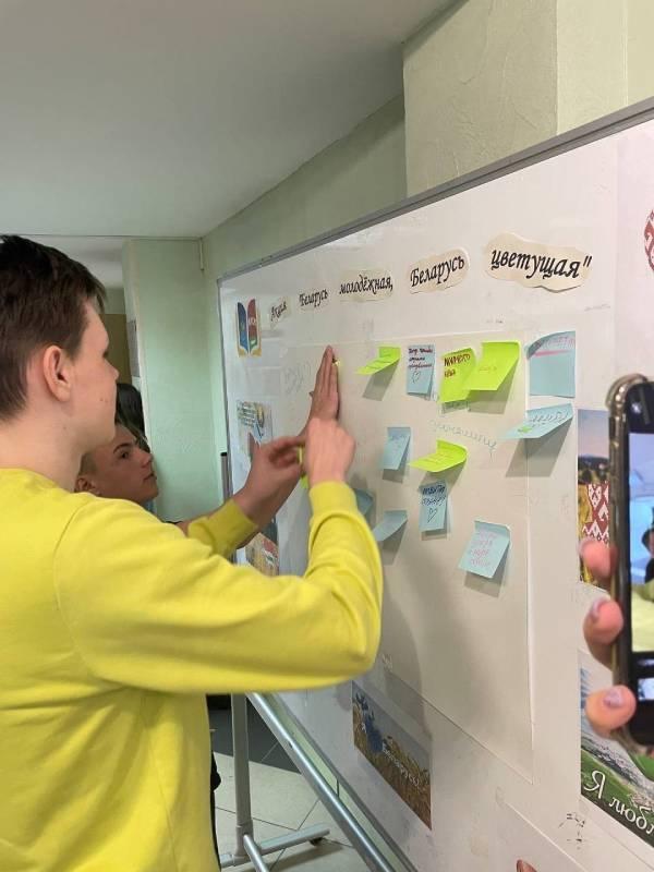 Молодежи было предложено написать искренние пожелания для своей страны на импровизированной доске пожеланий, высказать слова благодарности за созидание и труд во благо Родины и, конечно, вспомнить о значении герба, флага и гимна для каждого белоруса.