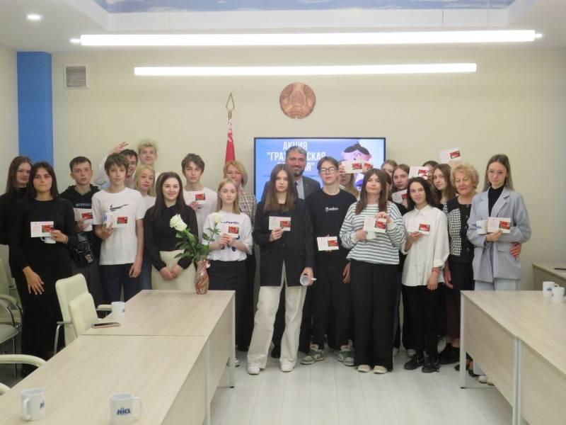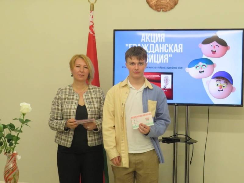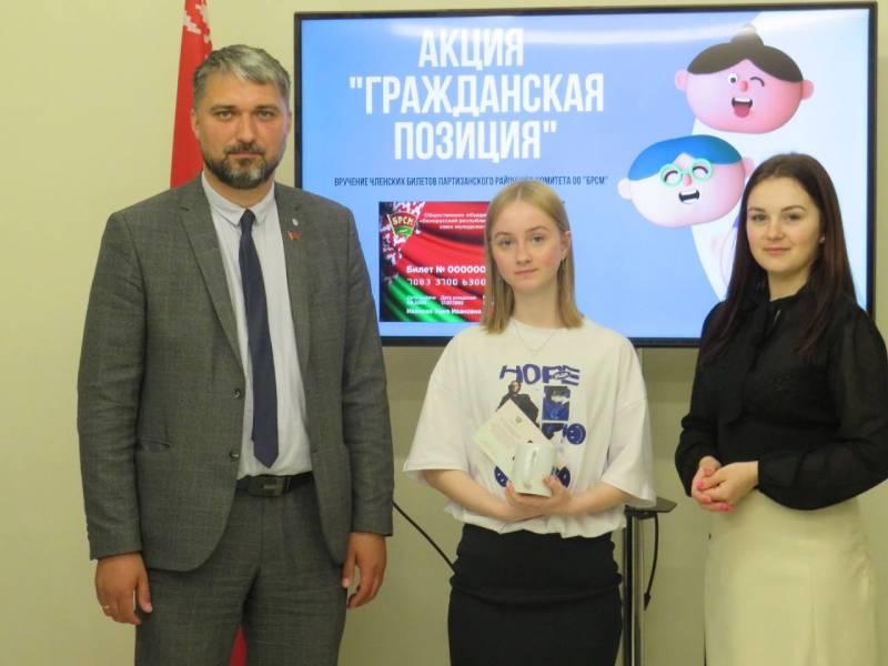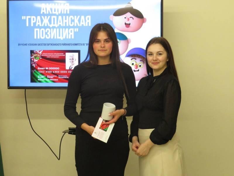 17 мая 2023 года в филиале КСТМиА УО РИПО состоялось торжественное вручение членских билетов общественной организации «Белорусский республиканский союз молодежи» при участии второго секретаря Партизанского РК ОО «БРСМ» г.Минска Лешук Валерии Александровны.