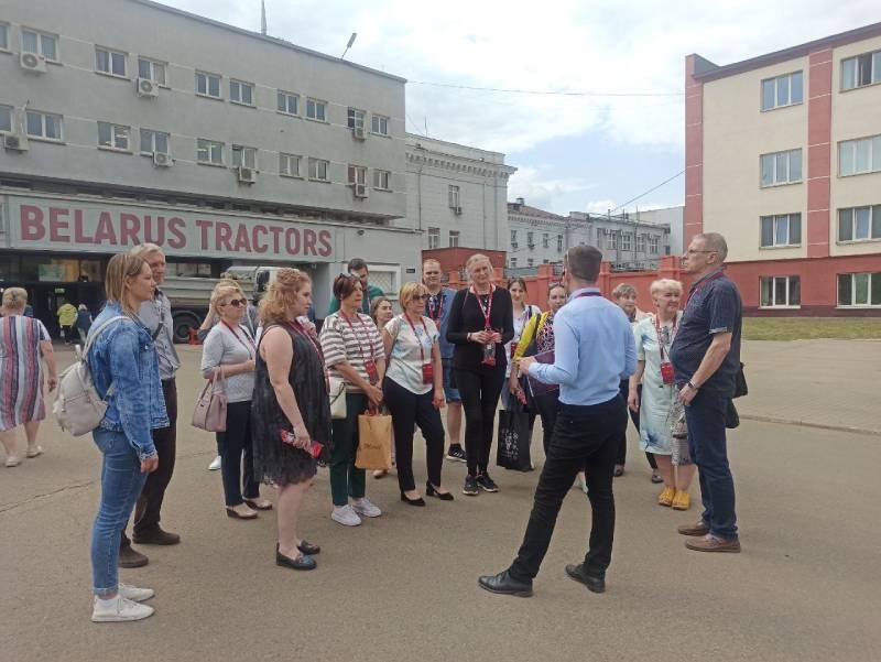 Во время пешей прогулки по территории ОАО "МТЗ" гости побывали в самых разных цехах и узнали историю одного из старейших производств.