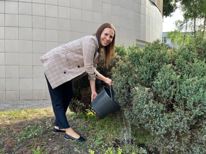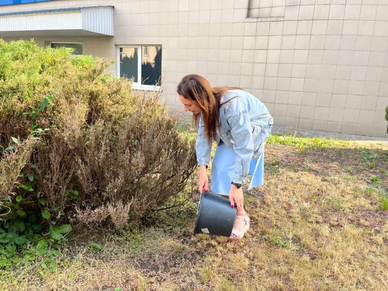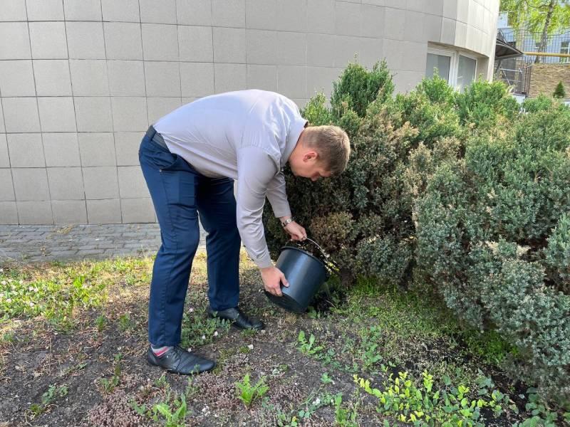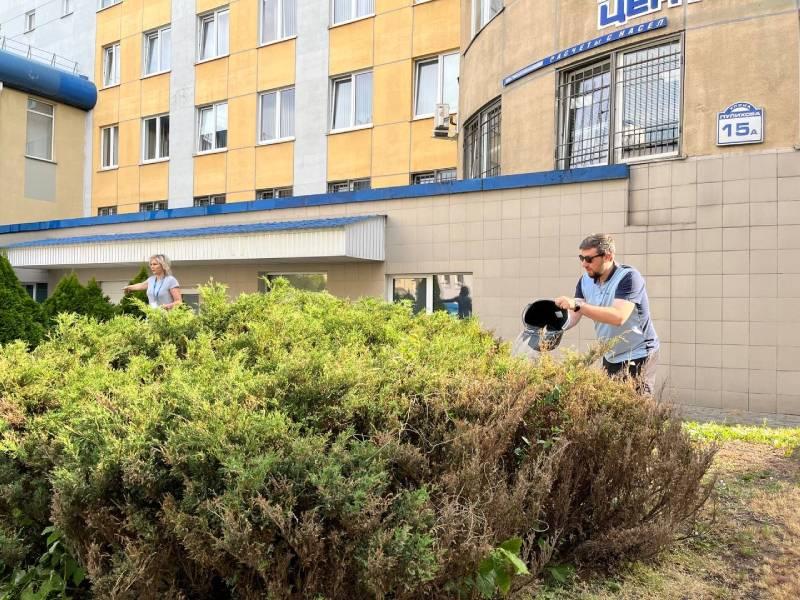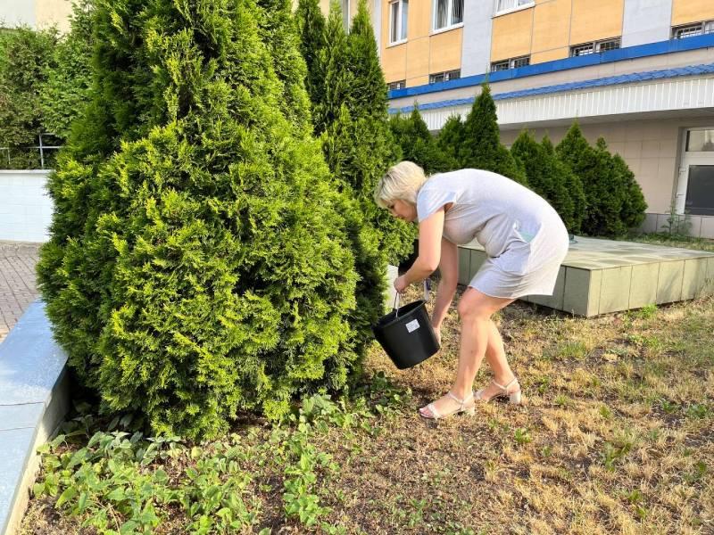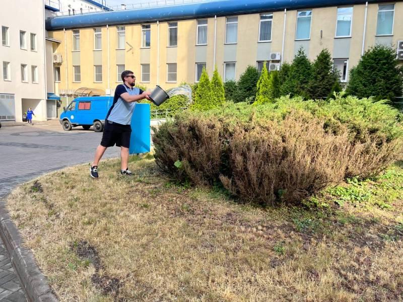 На территории предприятия много кустарников, которые радуют работников своей красотой. Чтобы сохранить красоту зеленых насаждений работники "Минскводоканал" произвели полив кустарников на территории предприятия.