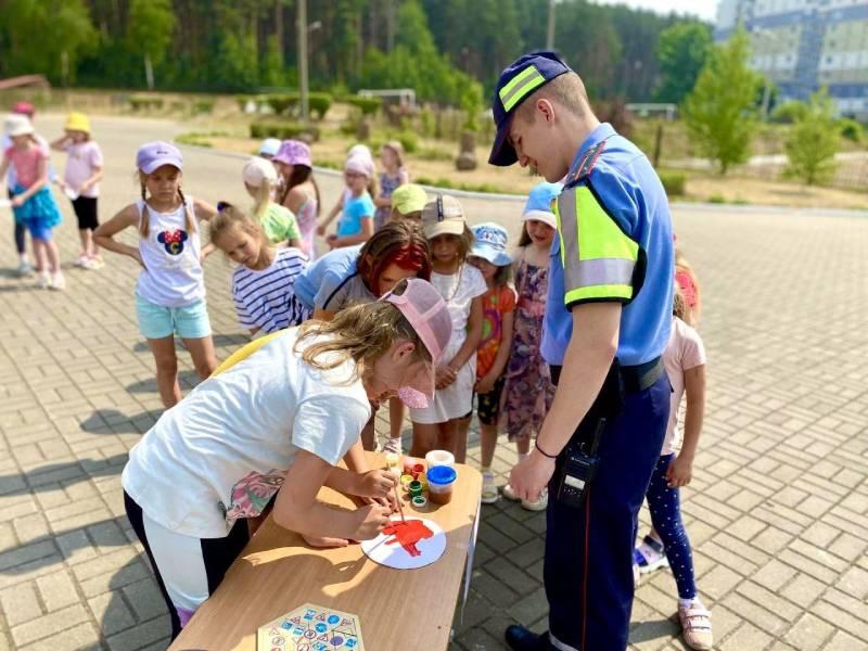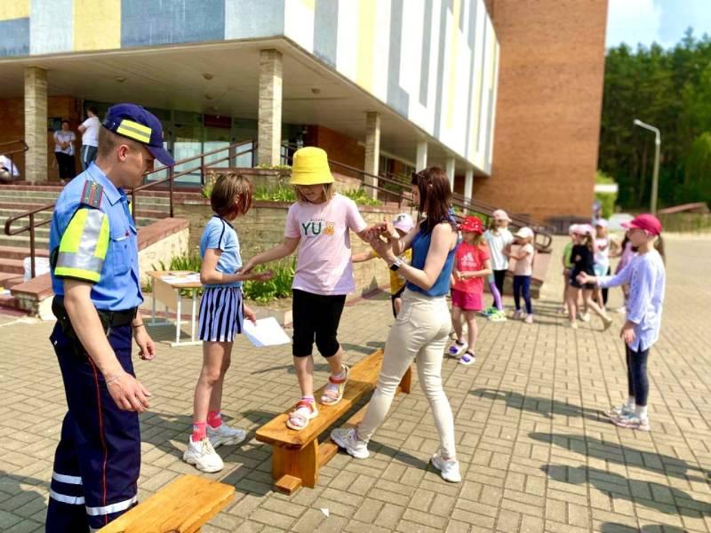 Сотрудники отдела ГАИ Партизанского РУВД г. Минска для ребят детского оздоровительного лагеря средней школы №223 г. Минска совместно со спасателями РОЧС провели квест-игру.