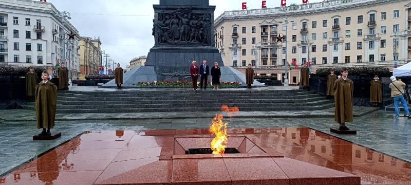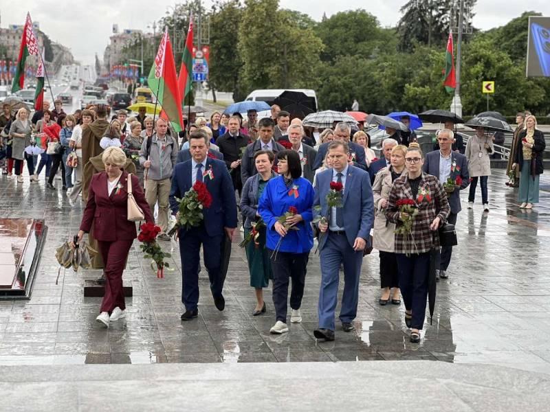 28 июня в 11:00 на площади Победы делегация Партизанского района г.Минска возложила цветы к монументу и отдала дань памяти героям Великой Отечественной войны минутой молчания.