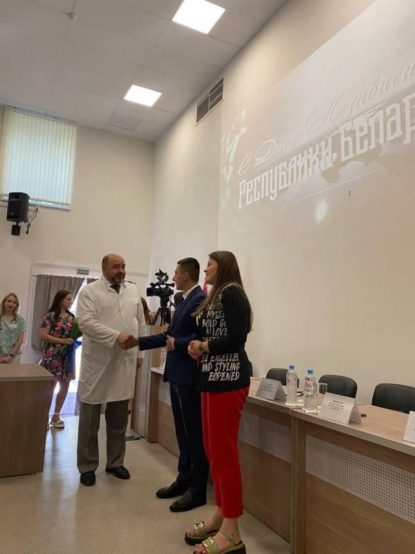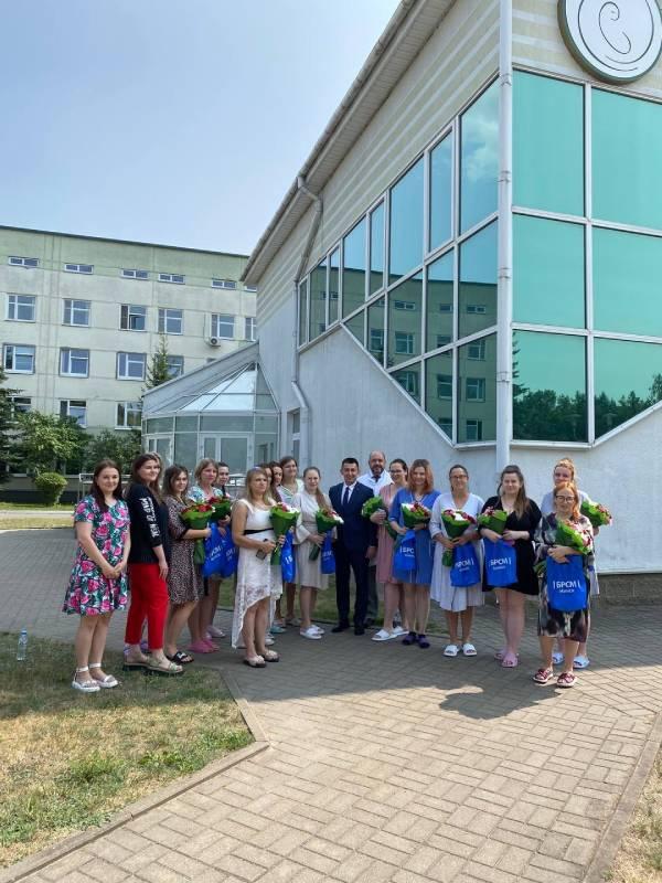 Поздравления и подарки мамам в рамках акции "Падары немауляцi вышiванку" в Клиническом родильном доме Минской области вручили Партизанский РК ОО «БРСМ» г.Минска и первый секретарь Минского городского комитета ОО «БРСМ» Бондарук Роман Сергеевич.