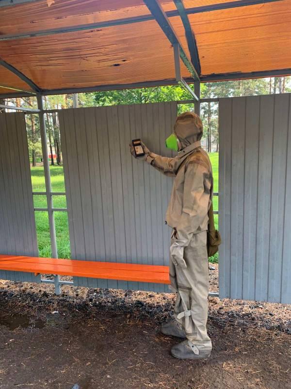 На проезде Геологическом отработали действия по дезактивации территории остановочного пункта и проезжей части при возникновении чрезвычайной ситуации.