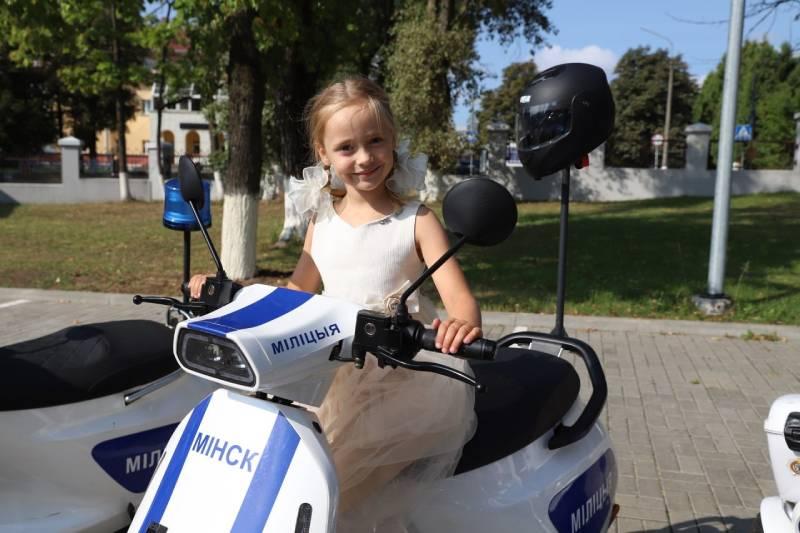 По завершении линейки ребята отправились на первый урок, а их друзья и родители – на выставку автомобилей и техники, подготовленную минской милицией. Все дети смогли сделать яркие фотографии и получили полезные подарки от сотрудников ГАИ.