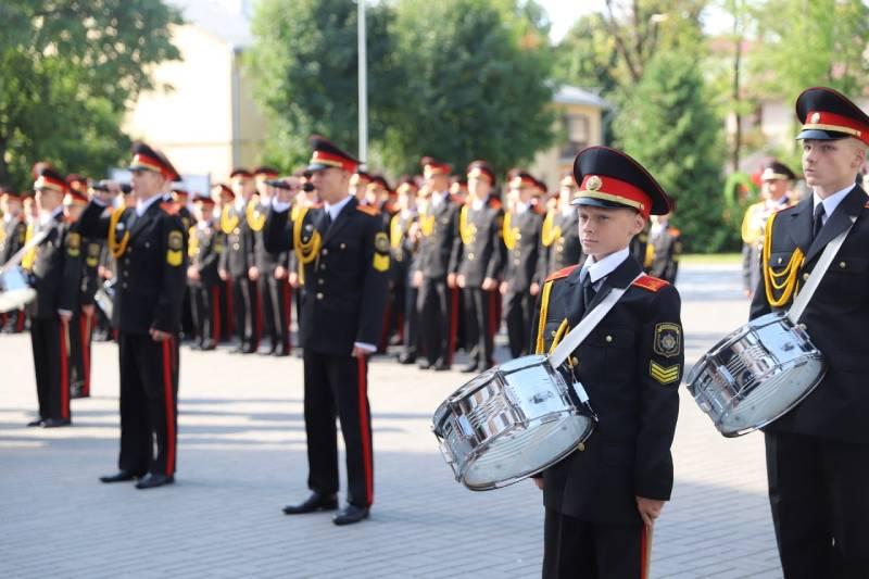 В Специализированном лицее МВД прошла торжественная линейка, посвященная 1 сентября. Юных воспитанников лицея поздравили высокие гости, заместитель главы администрации Партизанского района г.Минска Людмила Филиппович и заместитель начальника ГУВД Мингорисполкома полковник милиции Николай Лужинский.