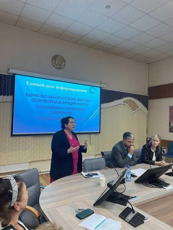 Перед сотрудниками выступила Нарышкина Елена Павловна - доцент кафедры историки-культурного наследия Беларуси Республиканского института высшей школы, кандидат исторических наук.