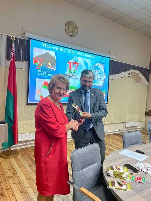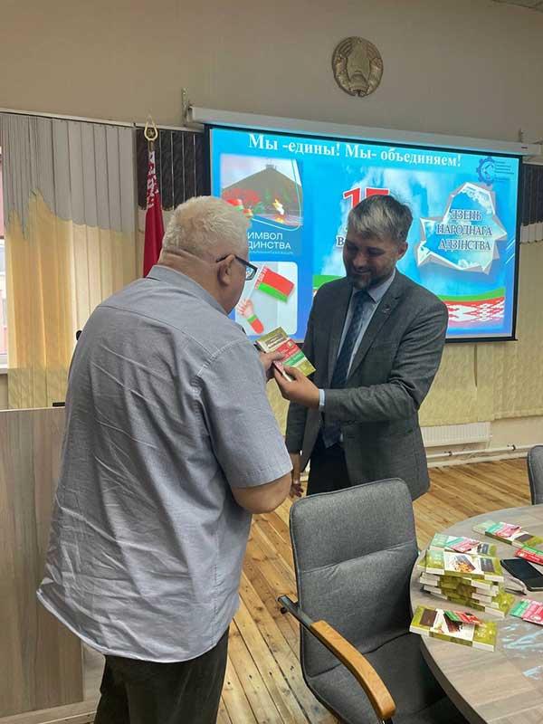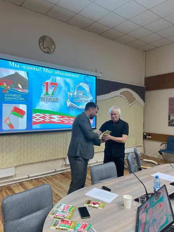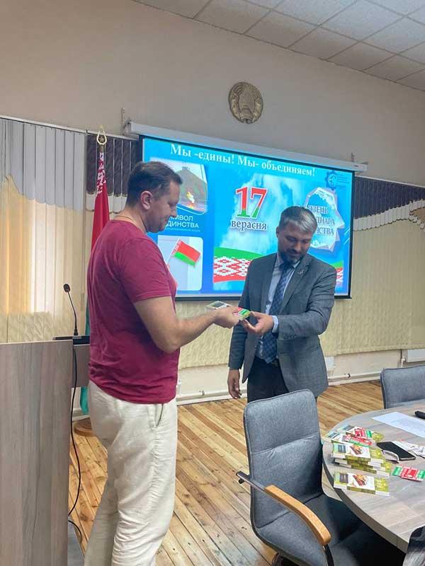 Также, в преддверии Дня народного единства и в рамках Республиканской акции «Мы -едины! Мы- объединяем!» вручили Нагрудные значки «Флаг Республики Беларусь» сотрудникам филиала.Вручение этих значков перед Днём народного единства подчеркивает важность патриотических ценностей, способствует укреплению коллективного духа и единства среди сотрудников.
