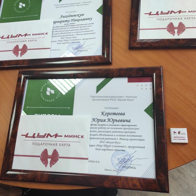 В преддверии Дня народного единства председатели первичных организаций Партизанской «Белой Руси» награждены памятными подаркам за высокие результаты работы с активом.