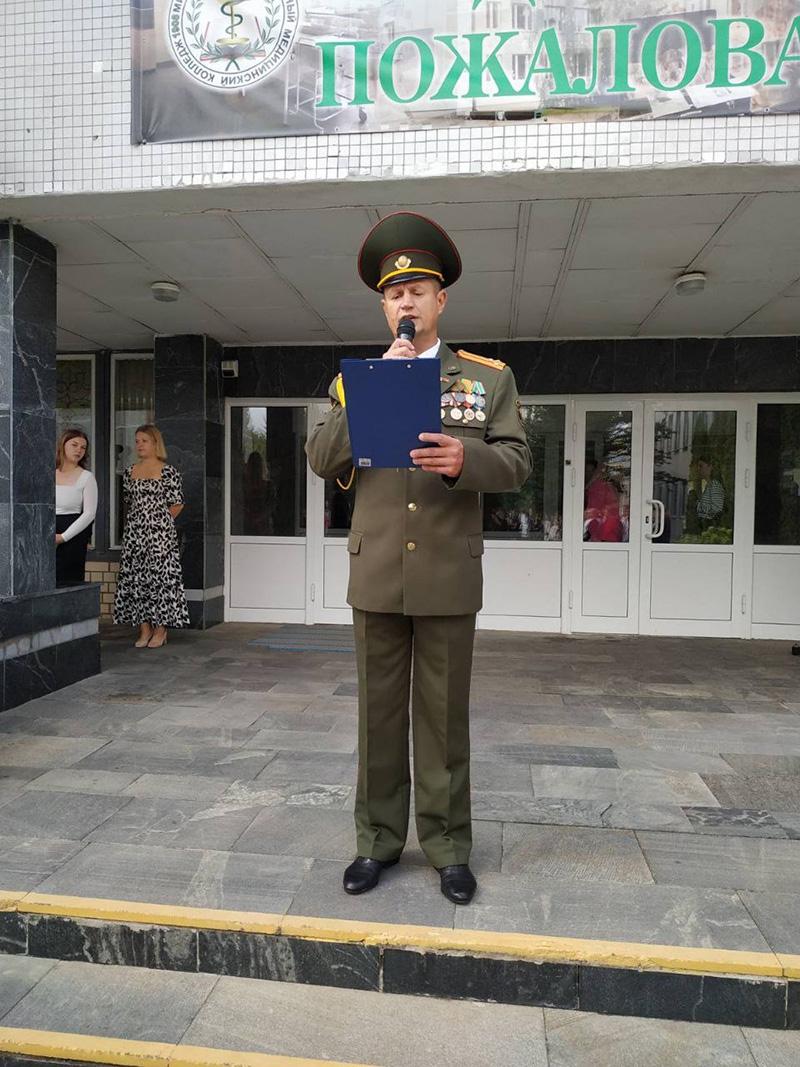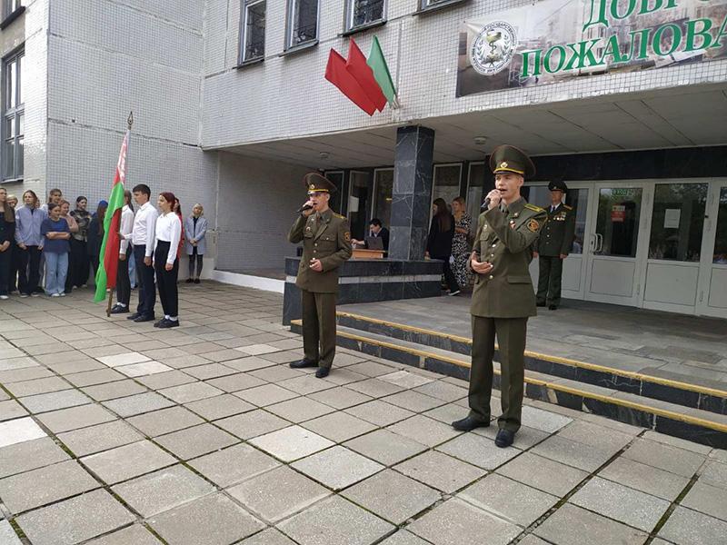 Учащихся и сотрудников колледжа пришли поздравить курсанты военно-медицинского института УО «Белорусский государственный медицинский университет» Иван Лесик и Глеб Цветков.