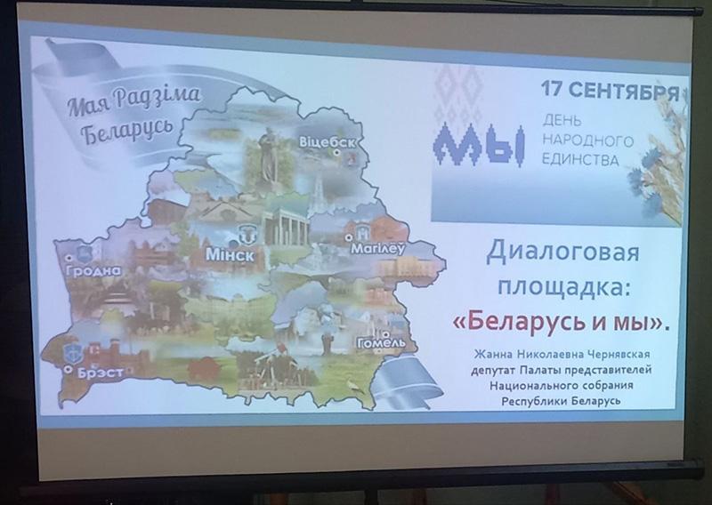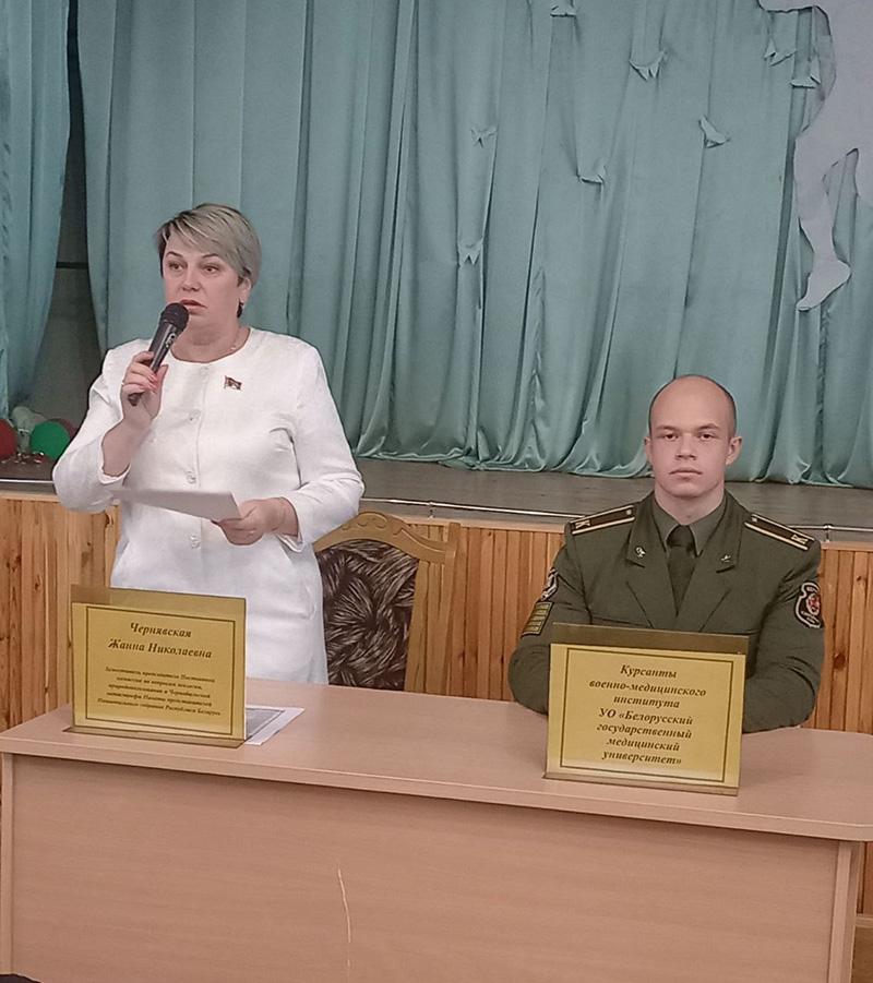 В диалоге приняли участие: Чернявская Жанна Николаевна, заместитель председателя Постоянной комиссии Палаты представителей Национального собрания Республики Беларусь по вопросам экологии, природопользования и чернобыльской катастрофы; курсанты: Мазуркевич С. А., Воронов К. П., Лаврецкий Г. А., Шершнев А. В. заместитель директора по воспитательной работе Куликова Т.С, руководитель военно- патриотического воспитания Макаревич В.В.