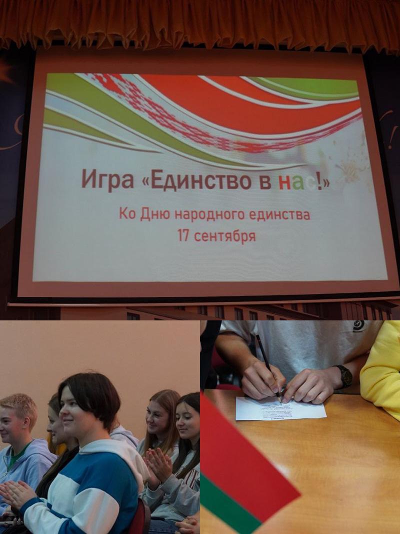 Участниками мероприятия стали группы Л-2203 и ДО-2301. Ребята в интерактивном формате отвечали на тематические вопросы, связанные с историей, культурой, традициями нашей страны, углубились в понятие "единение" и даже разработали логотипы предстоящего праздника.