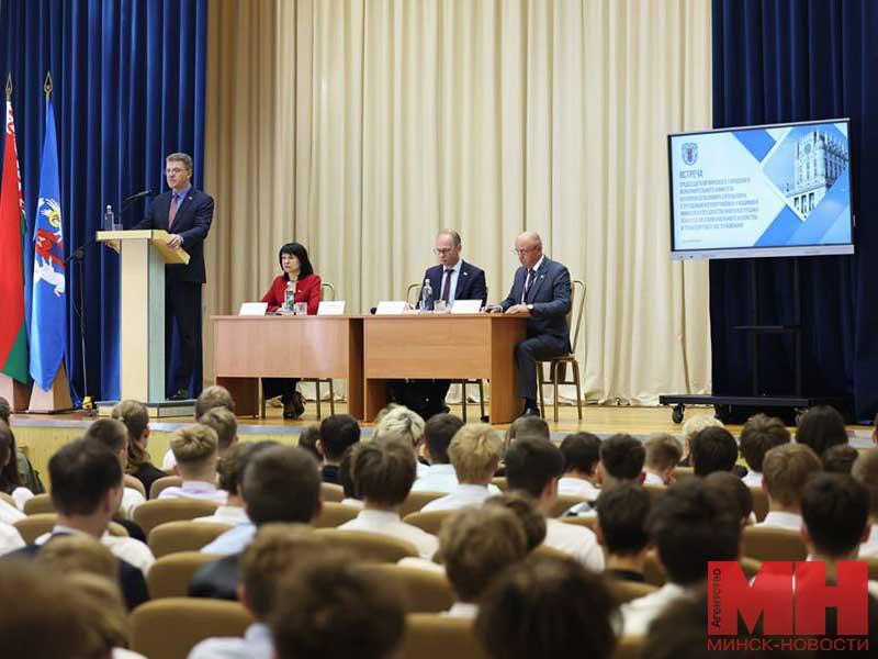 Председатель Мингорисполкома встретился с педагогами и учащимися Минского государственного колледжа технологий коммунального хозяйства и транспортного обслуживания.