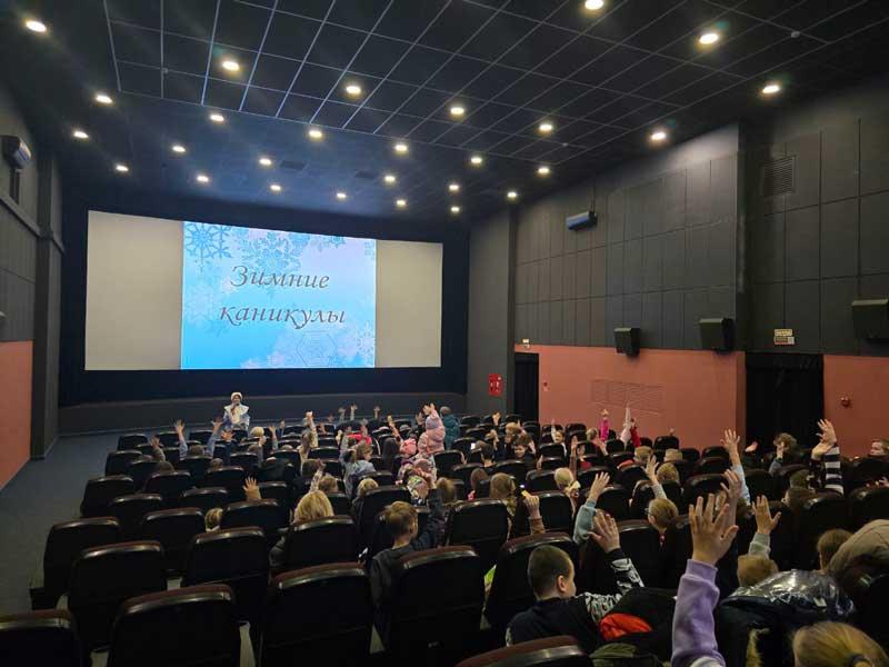 Перед началом киносеанса прекрасная Снегурочка провела беседу- игру " Здравствуй, праздник новогодний". Ребята с удовольствием отгадывали загадки, принимали участие в викторине, слушали и рассказывали стихи про зиму и новый год. Все это помогло создать в зале новогоднее настроение.