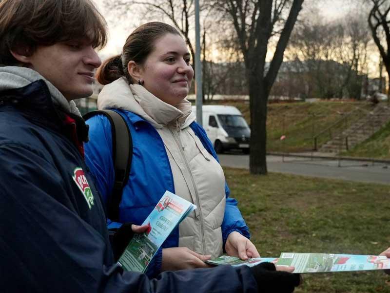 Активисты Минского государственного лингвистического университета и колледжа архитектуры и строительства раздавали гражданам буклеты с основной информацией об электоральной кампании около «Минского тракторного завода», вблизи кинотеатра «МИР».