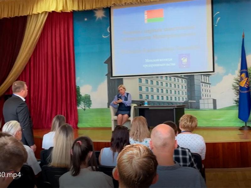 На встрече обсуждают возможности прохождения практики и трудоустройства на предприятия города Минска. Первый заместитель председателя Мингорисполкома отвечает на вопросы присутствующих.