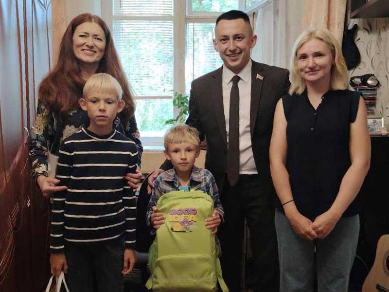 Заместитель главы администрации Партизанского района г. Минска, депутат Мингорсовета Бондарук Роман Сергеевич и начальник управления социальной защиты Петрова Светлана Иосифовна поздравили с началом учебного года семьи Партизанского района г. Минска, воспитывающие детей-инвалидов.
