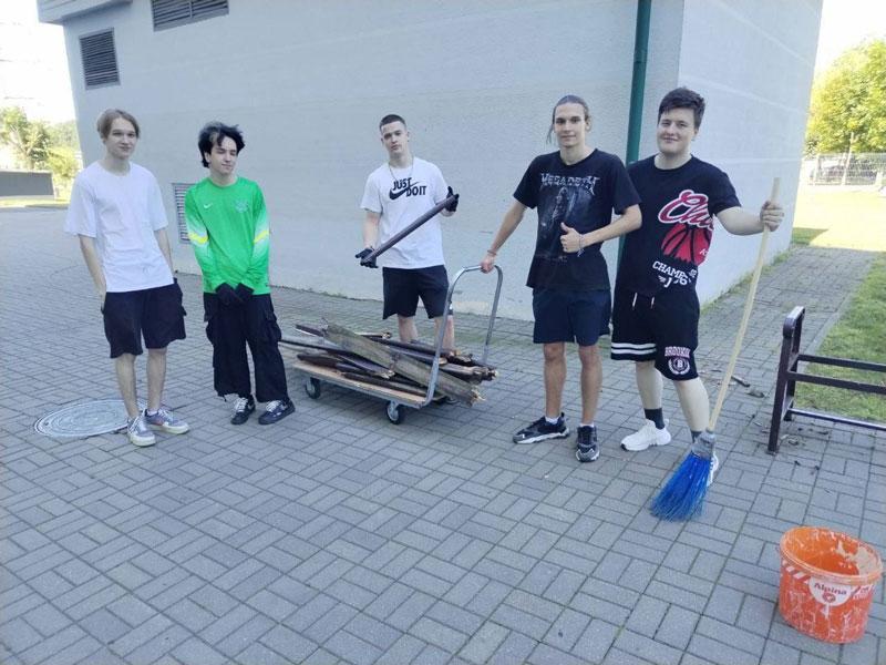 В кадре студенческий отряд в сфере оказания услуг "Трудовой десант-2024" им. Героя Советского Союза А. А. Филимонова Минского колледжа предпринимательства.