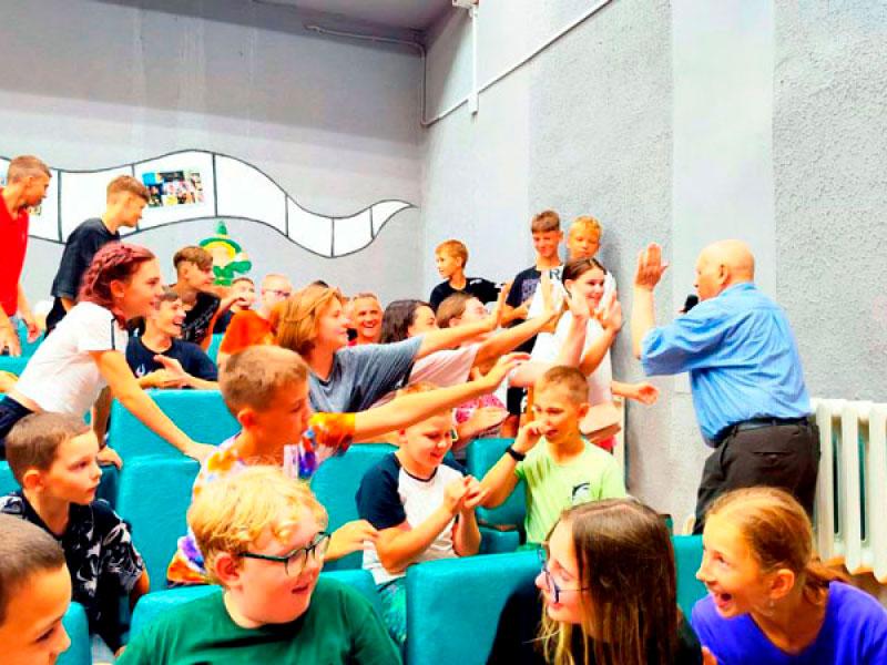 С музыкально-образовательным визитом ребят детского лагеря «Теремок» посетил музыкант и композитор Эдуард Ханок. В его творческой копилке, пожалуй, собраны все самые большие музыкальные награды: заслуженный и всенародно любимый, его песни знают все наизусть. «Лягу, прилягу», «То ли ещё будет», «Малиновка», «Два поля», «Я у бабушки живу», «Зима», «Завируха» - на этих песнях выросло не одно поколение, а современные аранжировки, исполнение молодыми певцами дают им новую жизнь даже сегодня.