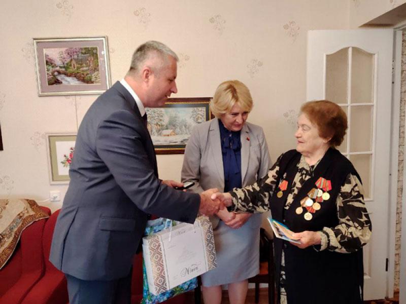 Глава администрации Партизанского района г. Минска ПОЛЯКОВ Николай Александрович, заместитель главы администрации Филиппович Людмила Анатольевна и начальник управления социальной защиты Петрова Светлана Иосифовна поздравили с Днем Независимости Республики Беларусь труженицу тыла Кудинову Антонину Наумовну.