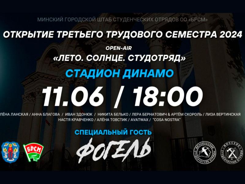 11 июня на стадионе «Динамо» вместе открываем Третий трудовой семестр 2024 города Минска! В программе много интересного: молодёжное студотрядовское шествие, вручение трудовых путевок студотрядам столицы, работа интерактивных площадок, фудтраков и многое другое.