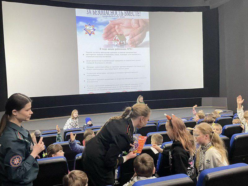 В рамках республиканской акции «За безопасность вместе!» инспектор Партизанского РОЧС совместно с представителями Белорусского добровольного пожарного общества провели профилактическое мероприятие с учащимися начальных классов учреждений образования Партизанского района на базе кинотеатра «Мир».