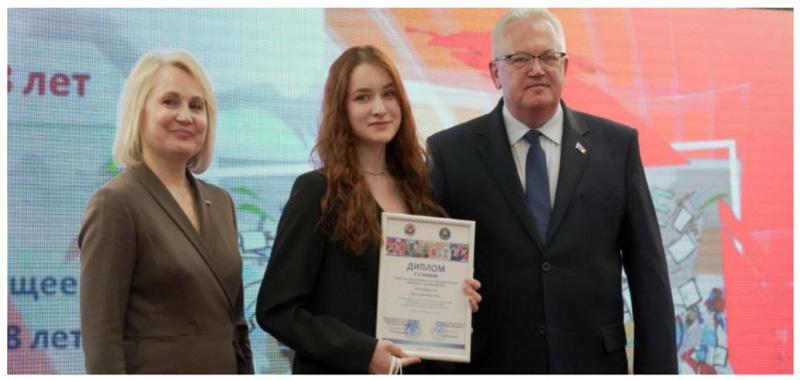Первое место в возрастной категории 16-18 лет заняла учащаяся филиала БНТУ "Минский государственный архитектурно-строительный колледж" Продедович Вероника с творческой работой "Наш выбор - наше будущее", выполненной в технике коллаж под руководством Даниленко Н.Е.