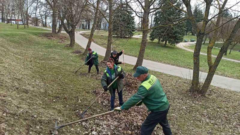 Работники УП "Зеленстрой Партизанского района г.Минска" очистили от мусора и прошлогодней листвы территории: