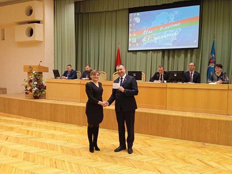 В торжественной обстановке председатель окружной избирательной комиссии Светлана Юреня вручила удостоверения: