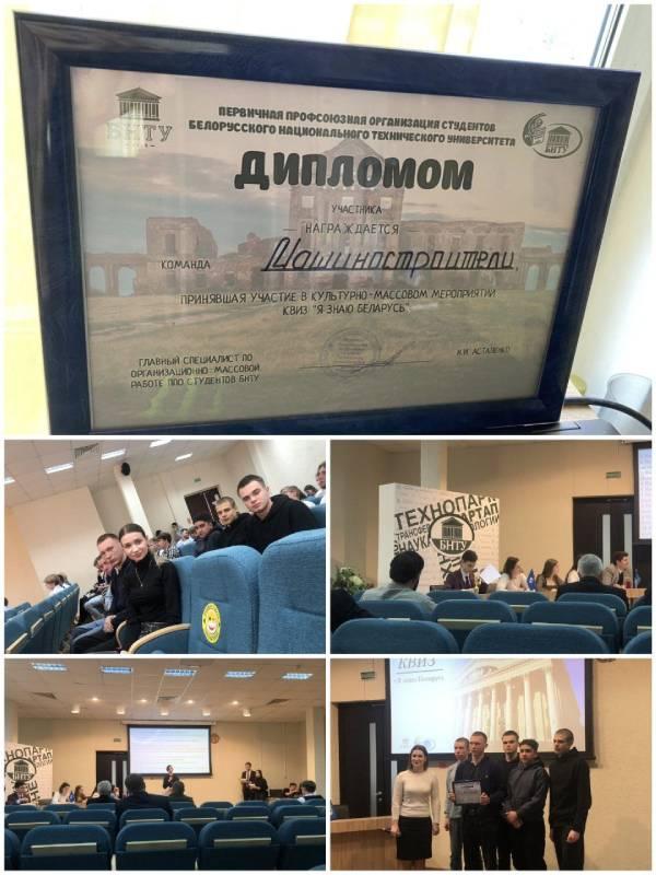 Команда учащихся филиала БНТУ «Минский государственный машиностроительный колледж» приняла участие в квизе «Я знаю Беларусь» на базе научно-практического центра "Политехник".