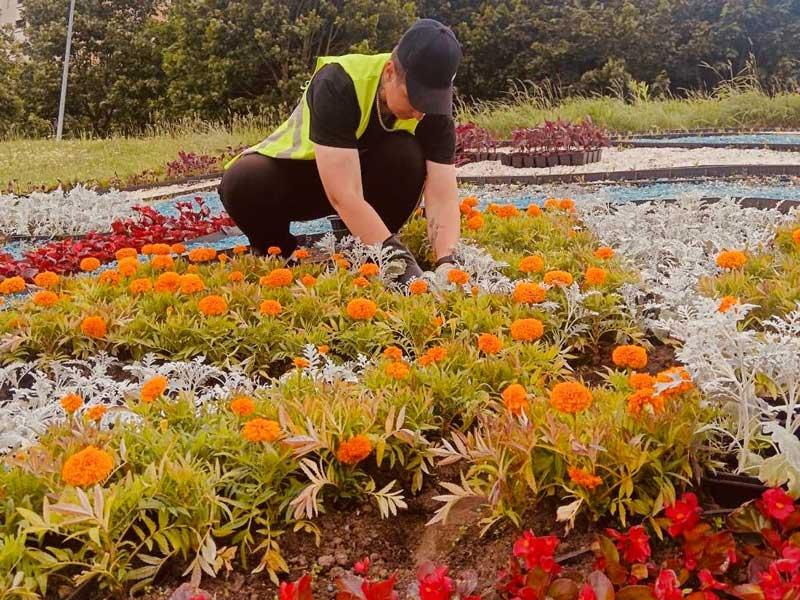 Зеленстрой Партизанского озеленяет Слепянскую водную систему: свежие цветы и хорошее настроение! Сотрудники предприятия высаживают яркие и красочные цветы в клумбу, расположенную в живописных границах Слепянской водной системы.