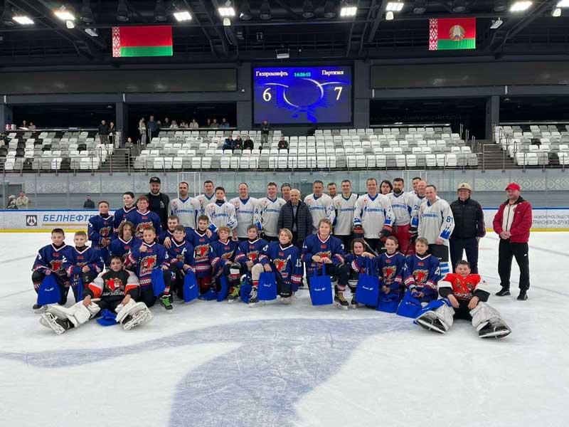 Товарищеский матч между юными хоккеистами команды «Партизан» и сотрудниками компании «Газпромнефть-Белнефтепродукт» состоялся на базе ФСК «Олимпик арена». Игра закончилась победой детской команды со счетом 7:6.