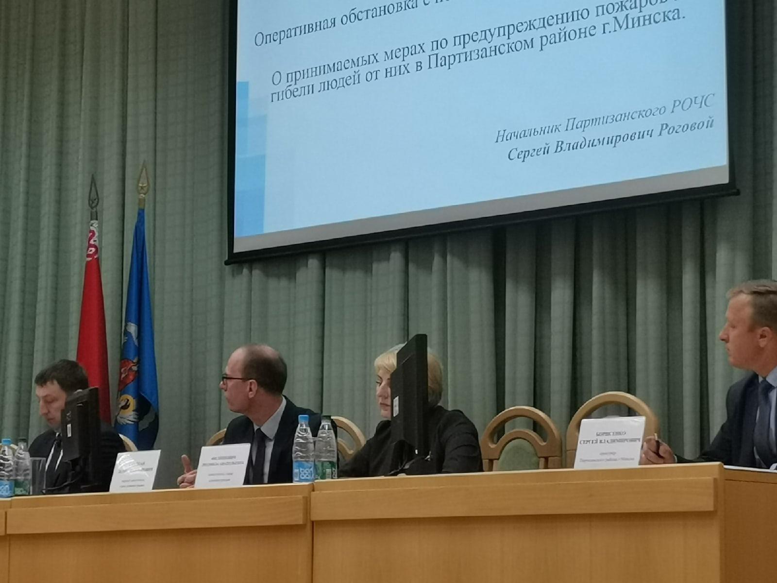 21 мая 2021 года в актовом зале администрации Партизанского района г.Минска состоялось совещание по вопросу «Организация проводимой профилактической работы действующими смотровыми комиссиями и рабочей группой по профилактике пожаров и гибели людей от них заинтересованными субъектами в Партизанском районе г.Минска»