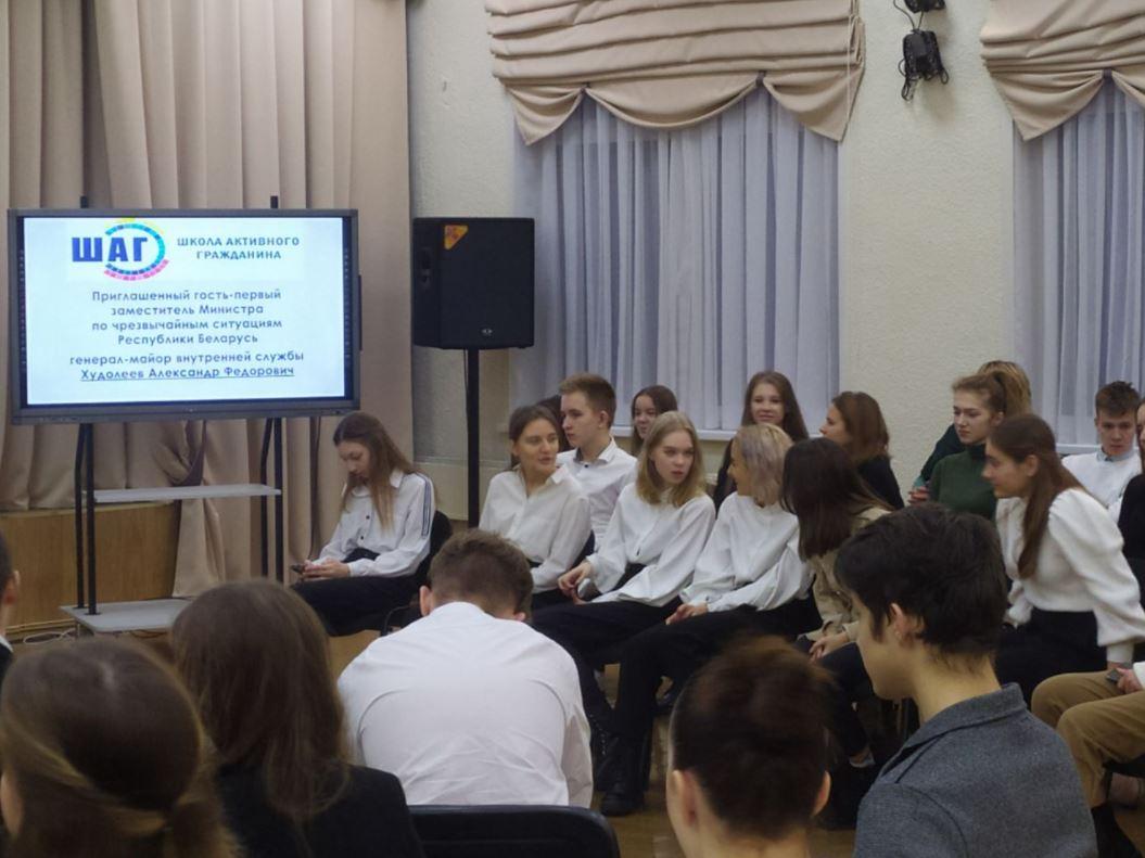 Сегодня посетил гимназию первый заместитель Министра по чрезвычайным ситуациям Республики Беларусь генерал-майор внутренней службы Худолеев Александр Фёдорович. В ходе своего визита Александр Фёдорович посетил интерактивную площадку "Город безопасности" и пообщался с учащимися гимназии.