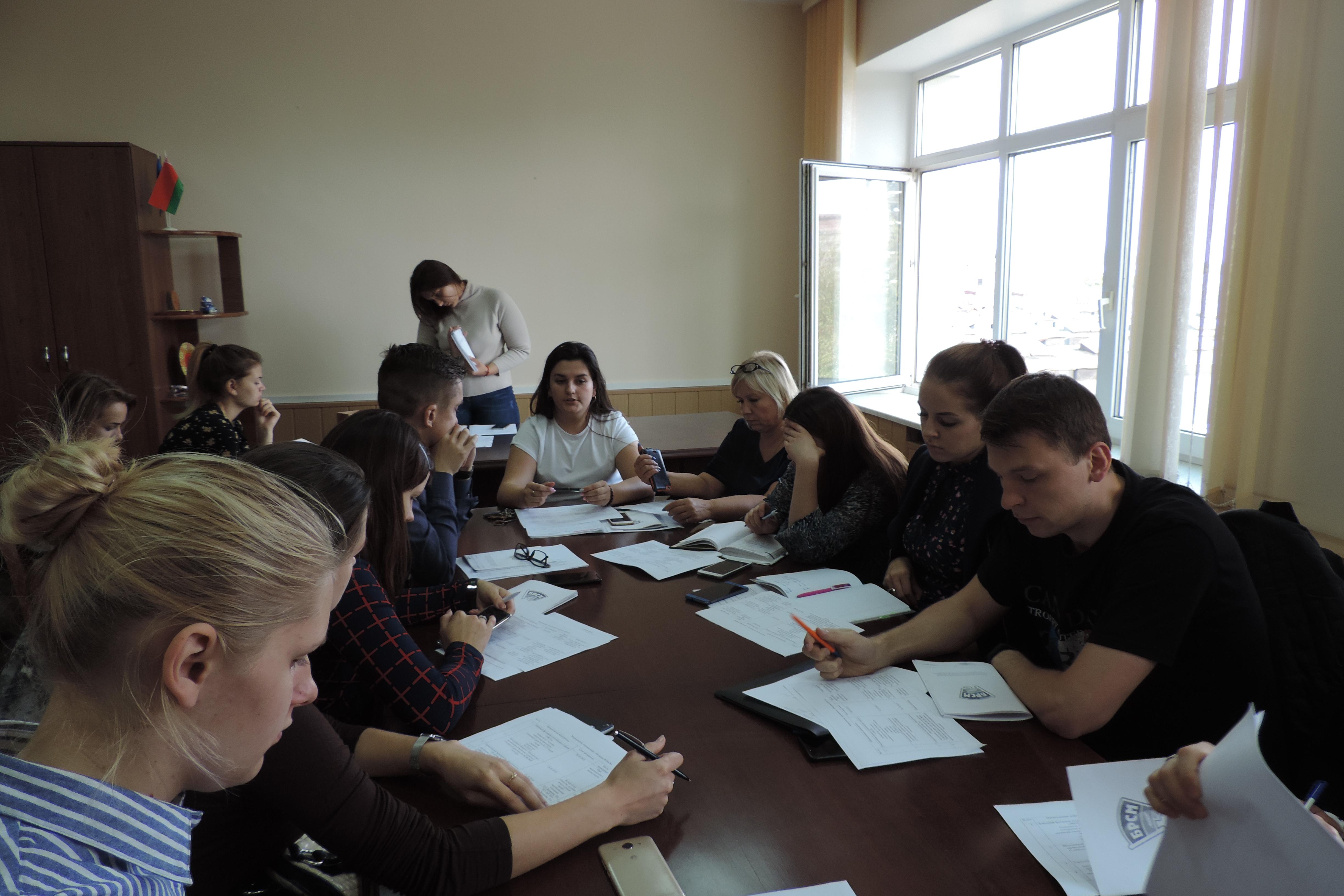 В администрации Партизанского района г.Минска 18 сентября 2018 года прошло заседание Бюро Партизанского районного комитета Общественного объединения "Белорусский республиканский союз молодежи" с участием начальника отдела идеологической работы, культуры и по делам молодежи Милькевич Ирины Николаевны, второго секретаря городского комитета ОО "БРСМ" Бондарука Романа, второго секретаря РК ОО "БРСМ" Жуковой Ирины и секретарей первичных организаций ОО "БРСМ" учреждений образования района, а также секретарей первичных организаций предприятий Партизанского района.