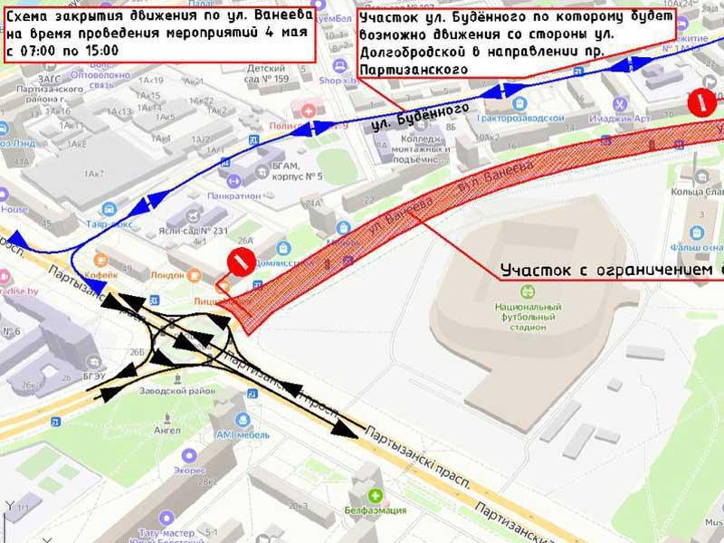 В связи с проведением открытого республиканского соревнования по лыжероллерам «Минский спринт» с 07:00 по 15:00 4 мая 2025 года изменится организация дорожного движения по улице Ванеева.