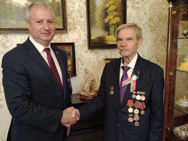 В преддверии празднования 80-й годовщины Великой Победы глава администрации Партизанского района г.Минска Николай Поляков, начальник управления социальной защиты Светлана Петрова с поздравлениями и с памятными подарками посетили жителя блокадного Ленинграда Аркадия Борисовича Либенсона.