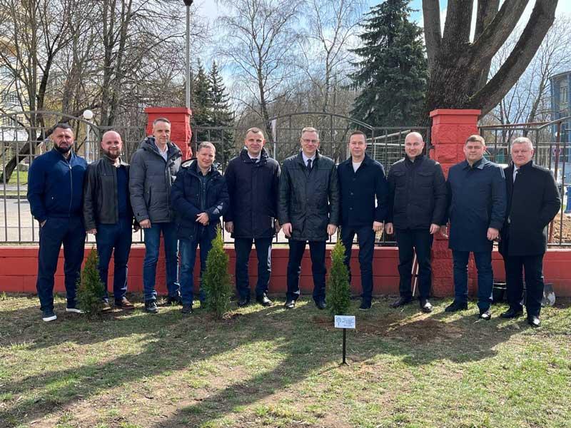 Аллея дружбы, которую УП "Минскводоканал" открыл в День единения народов Беларуси и России, стала больше! Делегацией из МУП «Водоканал» г. Казань посажена туя в знак дружбы и дальнейшего сотрудничества.