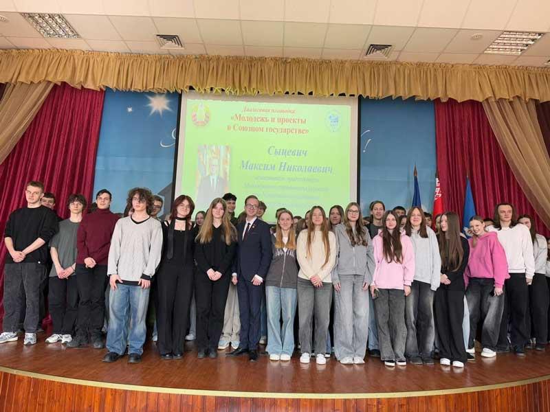 Состоялась встреча с учащейся молодёжью Минского колледжа предпринимательства и Молодежным советом при Совете Республики Национального собрания Республики Беларусь.