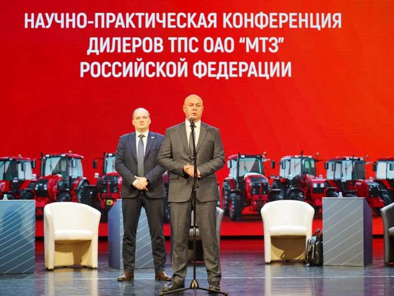 Научно-практическая конференция дилеров товаропроводящей сети Минского тракторного завода в Российской Федерации прямо сейчас проходит в ДК МТЗ. Участие в мероприятии принимают заместитель министра промышленности Беларуси Денис Бакей и генеральный директор ОАО «МТЗ» Сергей Авраменко, а также топ-менеджеры ОАО «МТЗ», руководители торговых домов и дилеры предприятия на территории России.